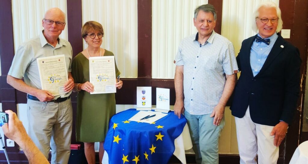 La soirée festive d’au revoir à la célèbre brasserie « l’Excelsior » ( fleuron de l’art nouveau ), après les discours, fut couronnée par la signature des conventions de partenariat proposés par Bonn et son Président Peter : « Bonn/ Bourges » et « Bonn/Chalons en champagne » signées par Peter pour Bonn, Michel pour Bourges et Pierrette pour Chalons en Champagne.