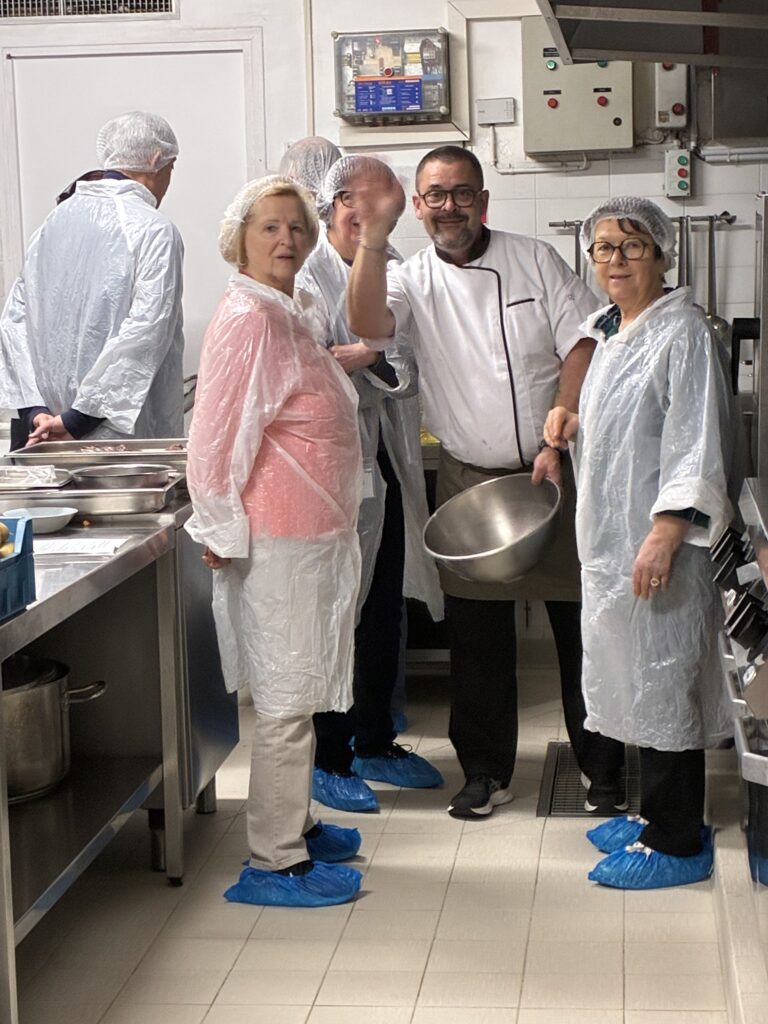 Pendant que l’un des groupes travaillait en cuisine, l’autre partait explorer la région, guidé par Bernard , animateur passionné et passionnant. Au programme visite de l’Olibo, du cimetière marin à Gruissan, et de la Chapelle des Auzils, des célèbres chalets de Gruissan ainsi que des magnifiques halles de Narbonne et la cathédrale.